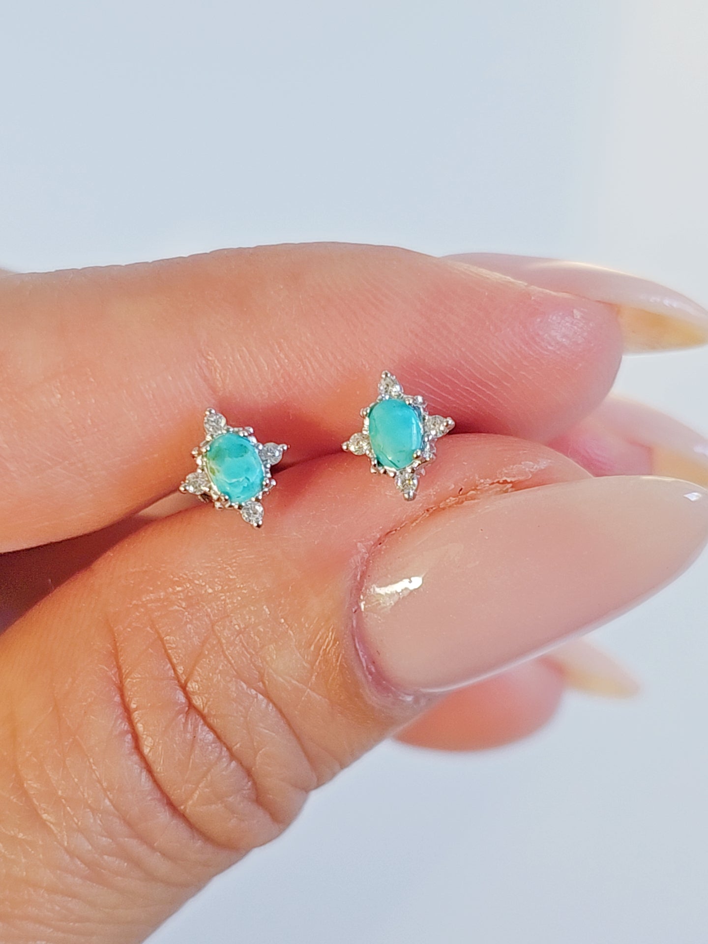 I bought these earrings for my daughter for Mother's Day. She loved them. Just the right size (6mm) to look very elegant on her ears. Pretty, sparkly opals with vivid colors., sturdy posts. Great value for sterling silver and my daughter was so very pleased with this gift.