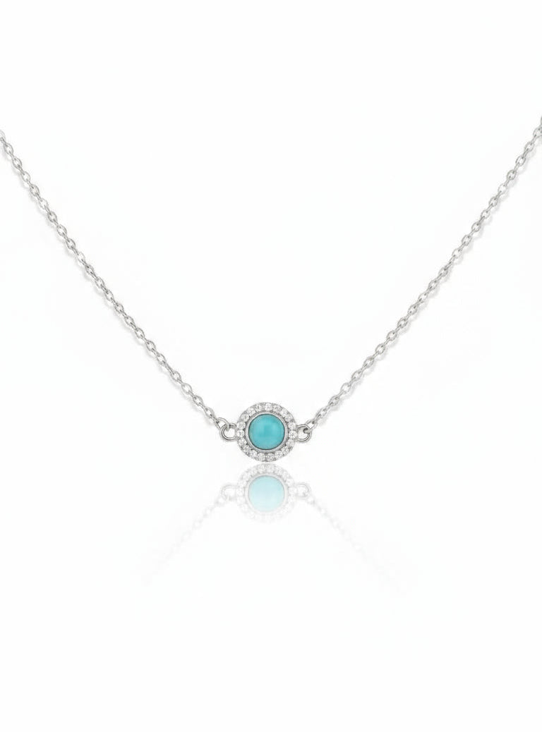 Sterling Silver Halo Turquoise Adjustable Necklace