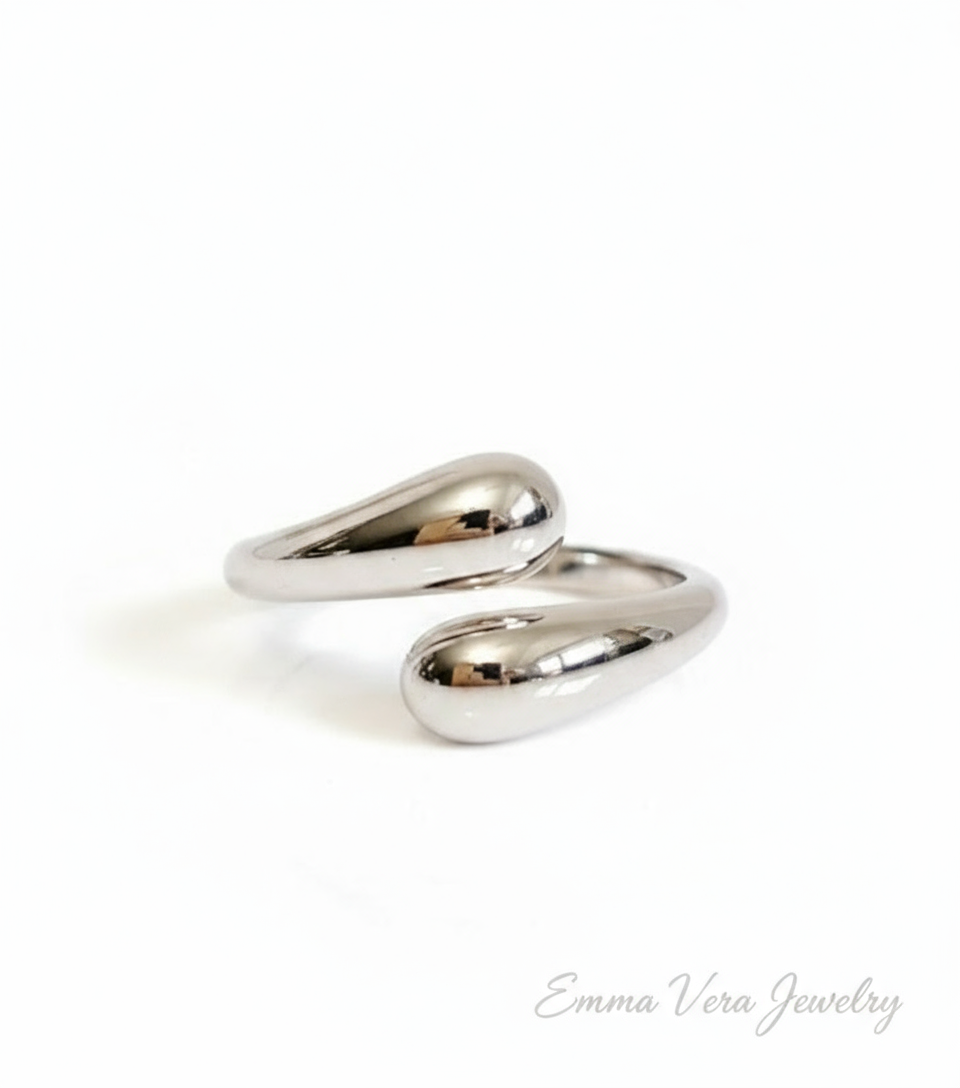 Sterling Silver Water Drop Adjustable Ring
