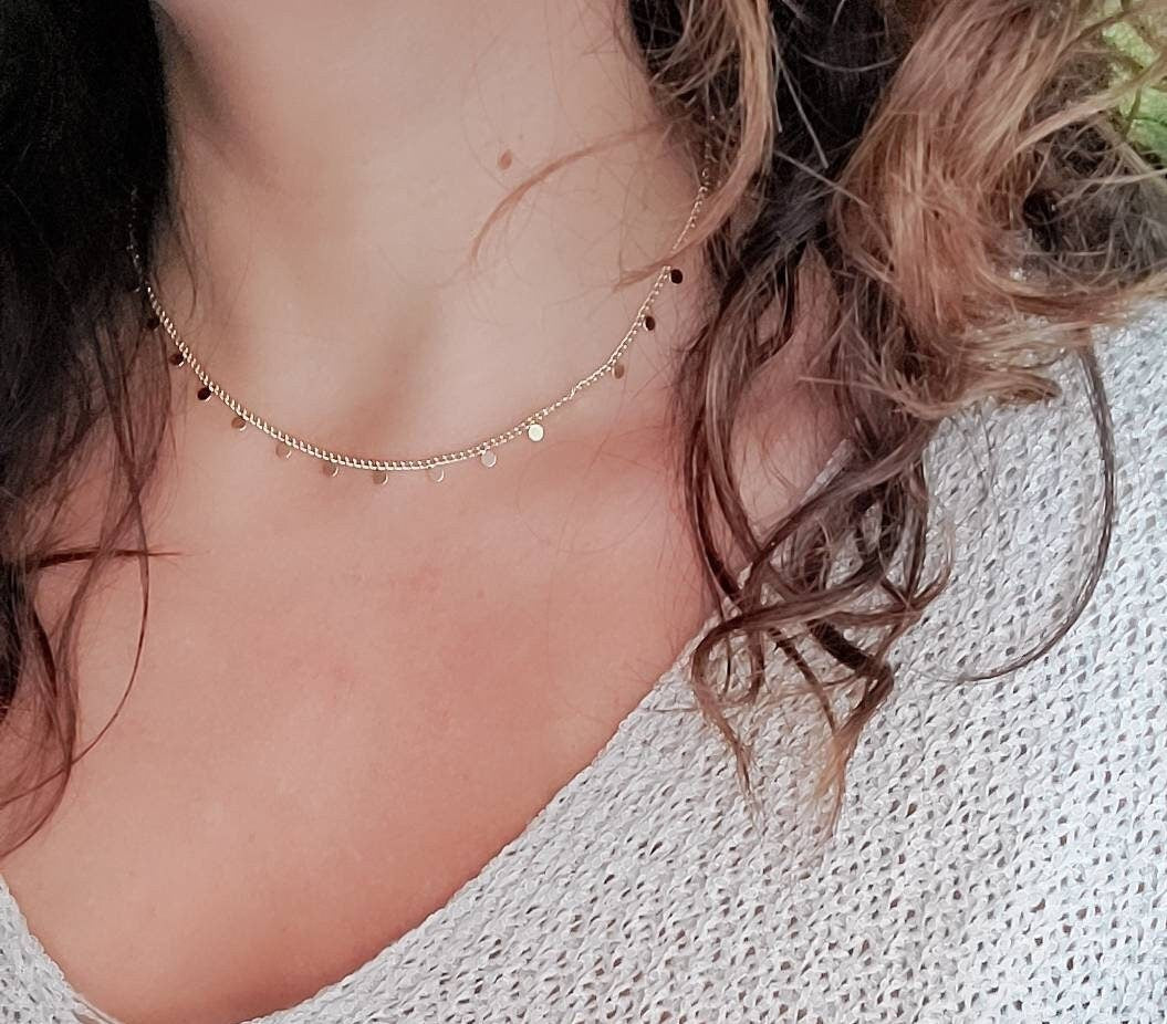Gold Disc Sequin Choker Necklace