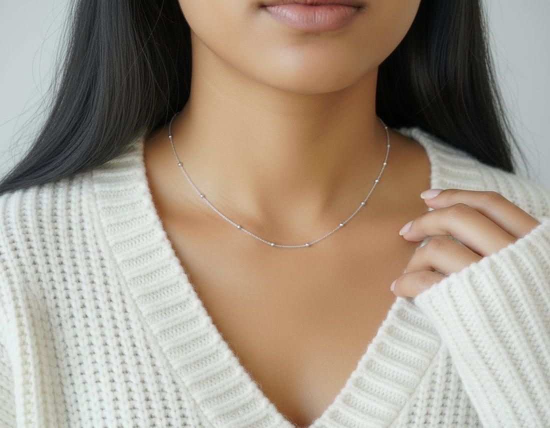 Sterling Silver 925 Dainty Beaded Bracelet, Anklet, Choker Chain
