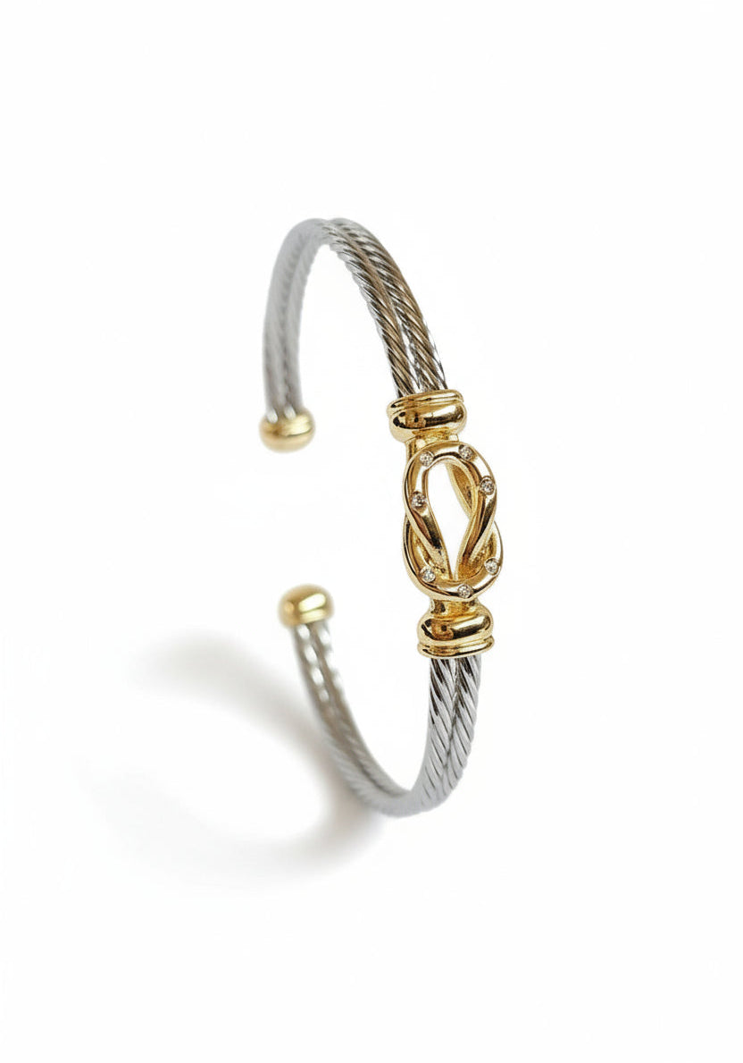 Gold Reef Knot Gold Plated Cable Bangle Bracelet