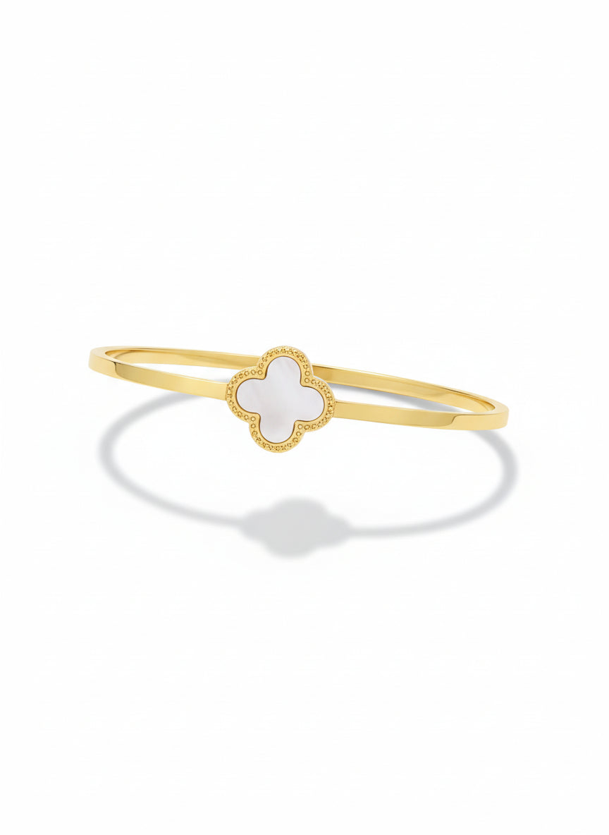 Gold Black & Mother of Pearl Flower Bangle Bracelet
