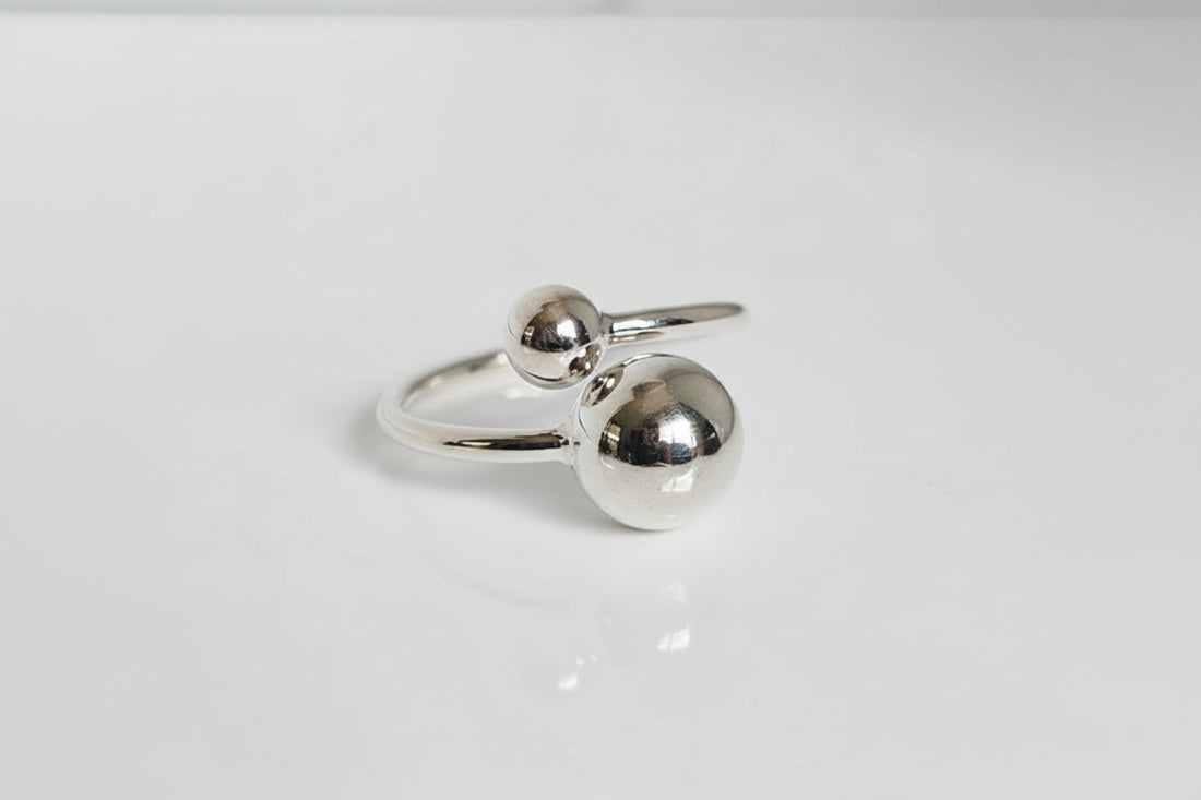 Sterling Silver 925 Dangling Spheres Statement Bold Ring