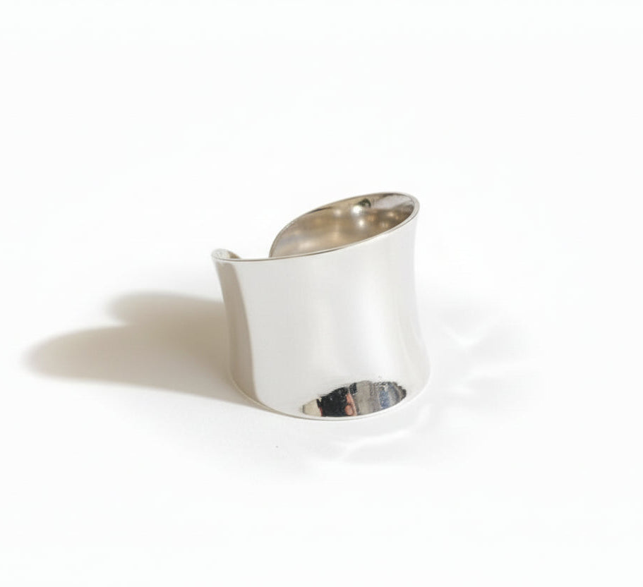 Sterling Silver Bold Boho Chic Concave Solid  925 Ring