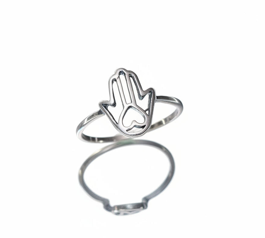 Sterling Silver Minimalist Hamsa Protection Amulet Ring