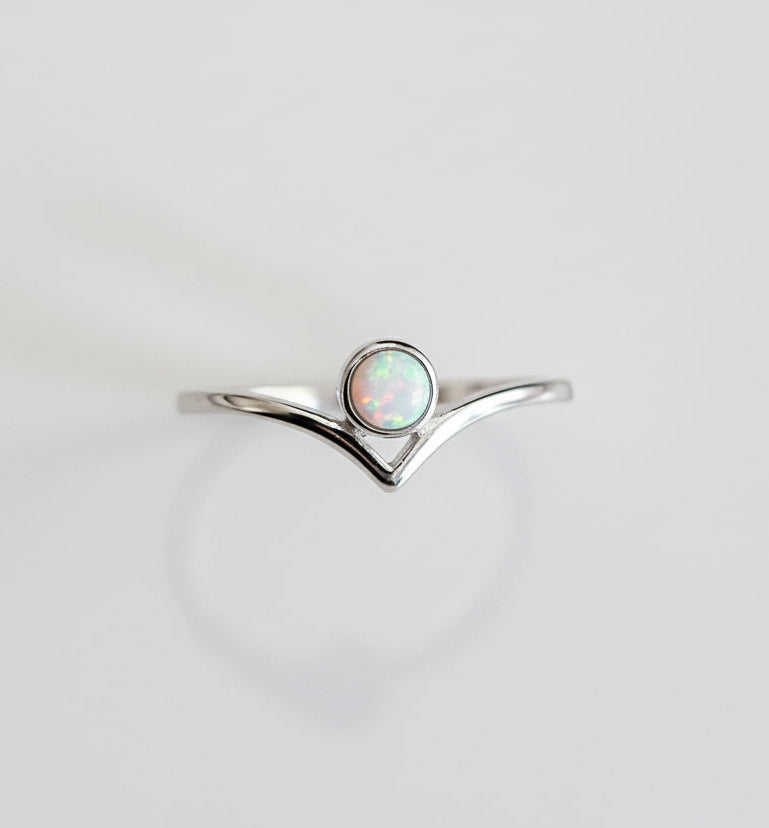 Sterling Silver Dainty Rainbow Moonstone Ring