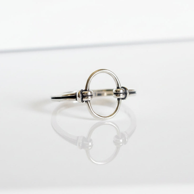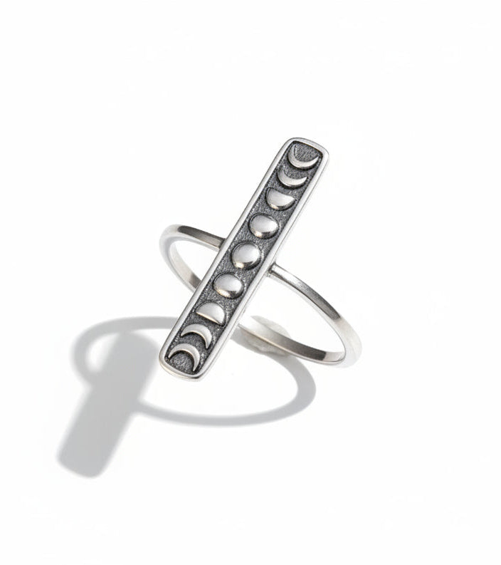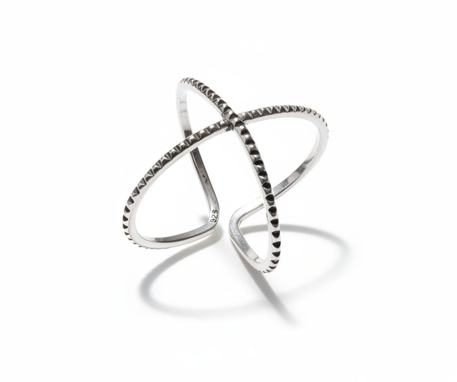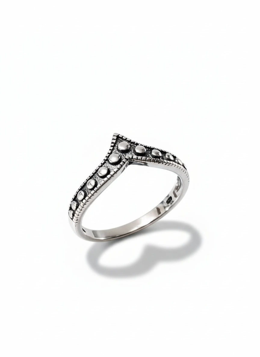 Sterling Silver Crescent Bali Beaded Moon Ring