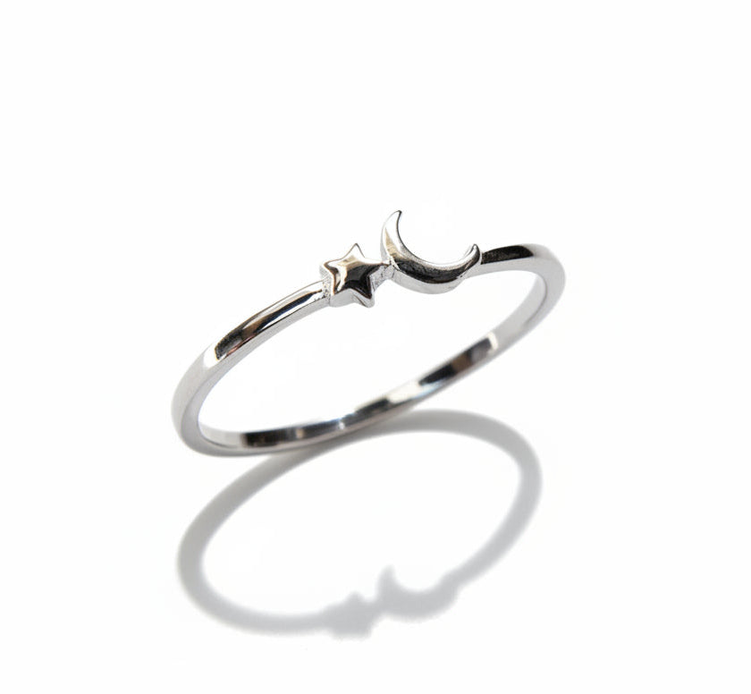 Sterling Dainty Crescent Moon & Star Silver Ring