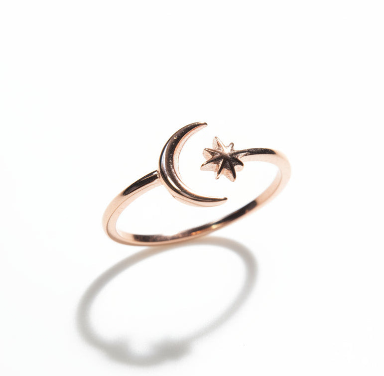 Sterling Silver Rose Gold Moon Star Ring
