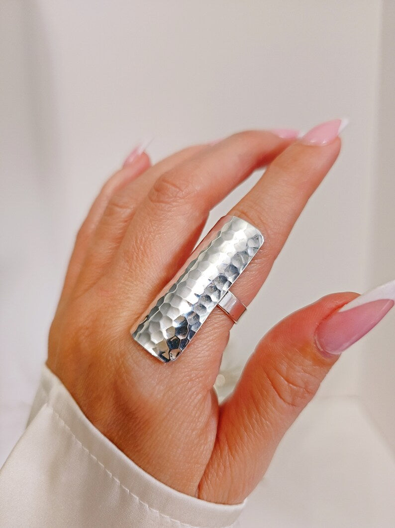 Sterling Silver Hammered Shield Boho Chic Ring