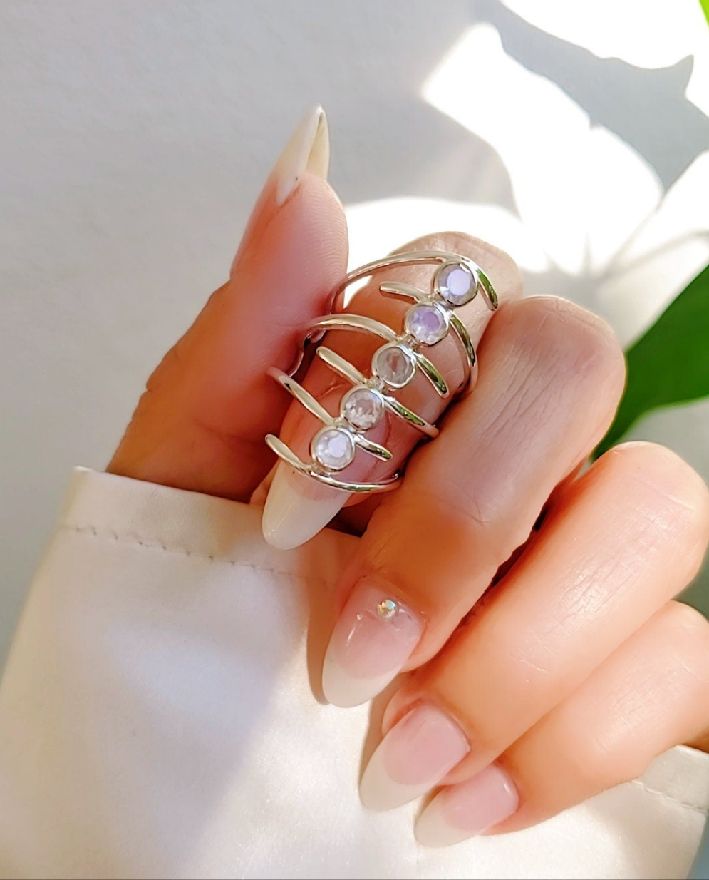 Sterling Silver Natural Moonstone Shield Bold Ring