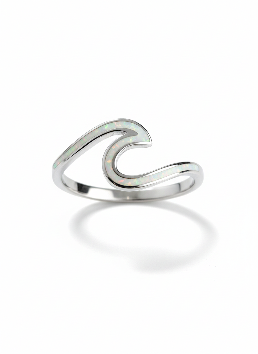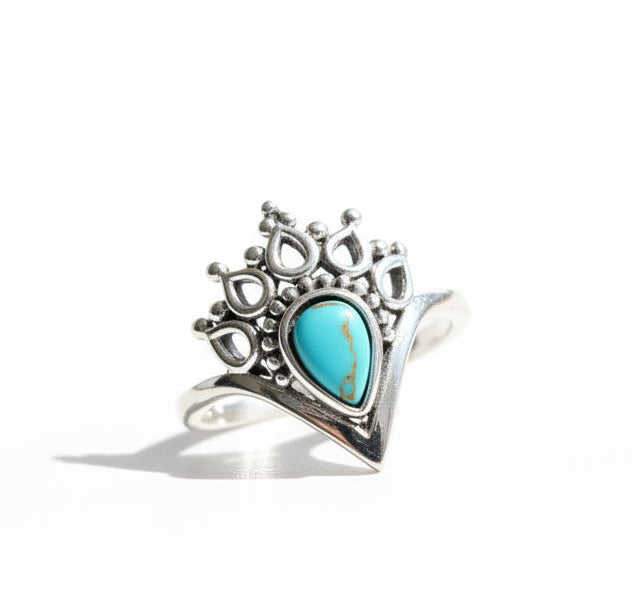 Sterling Silver Turquoise Beaded Crescent Moon Ring