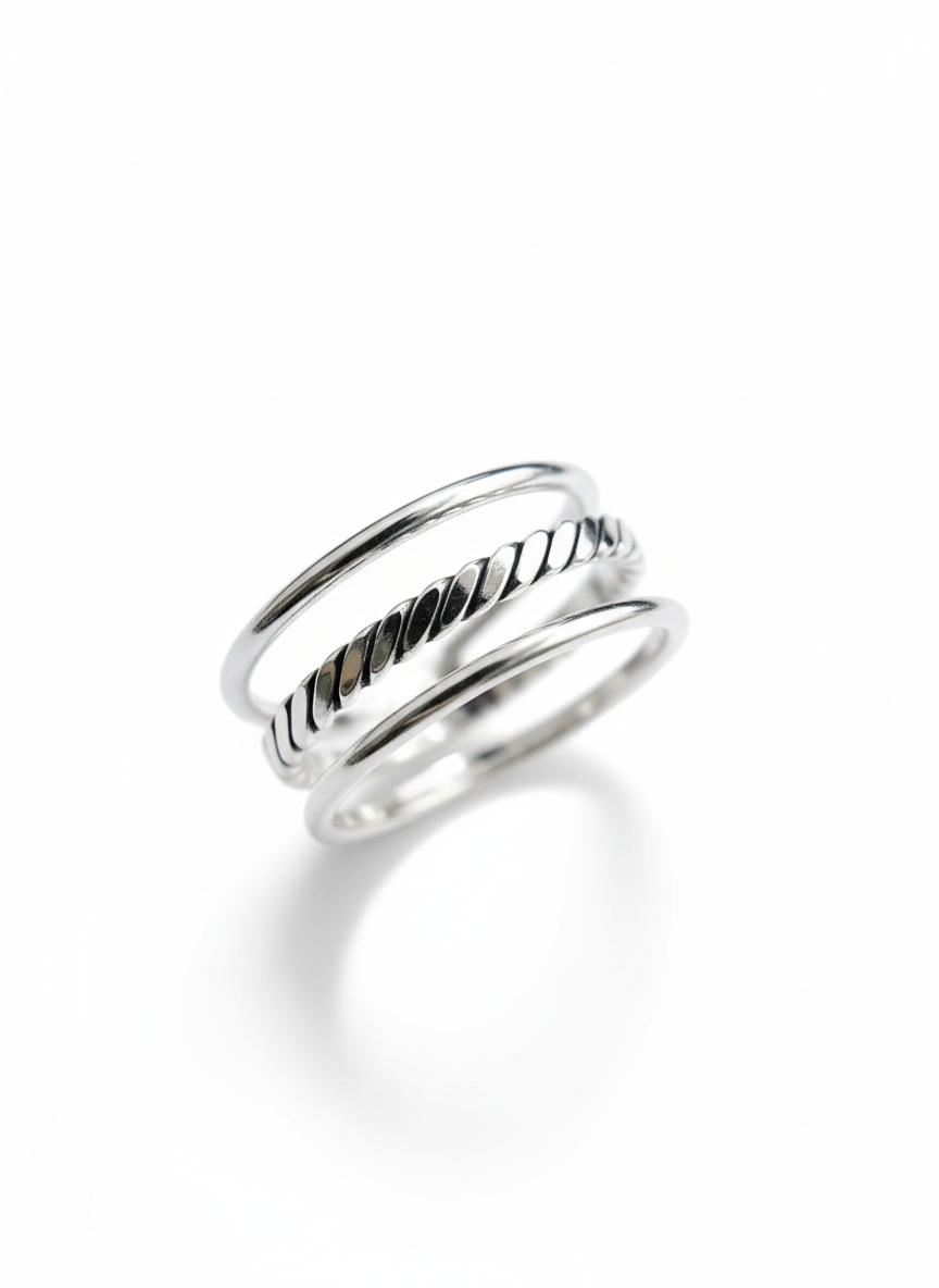 Sterling Silveelr Minimalist Thin Hammered Three Ring Set