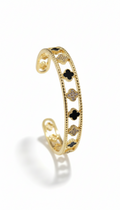 Gold Black & Mother of Pearl Flower Bangle Bracelet