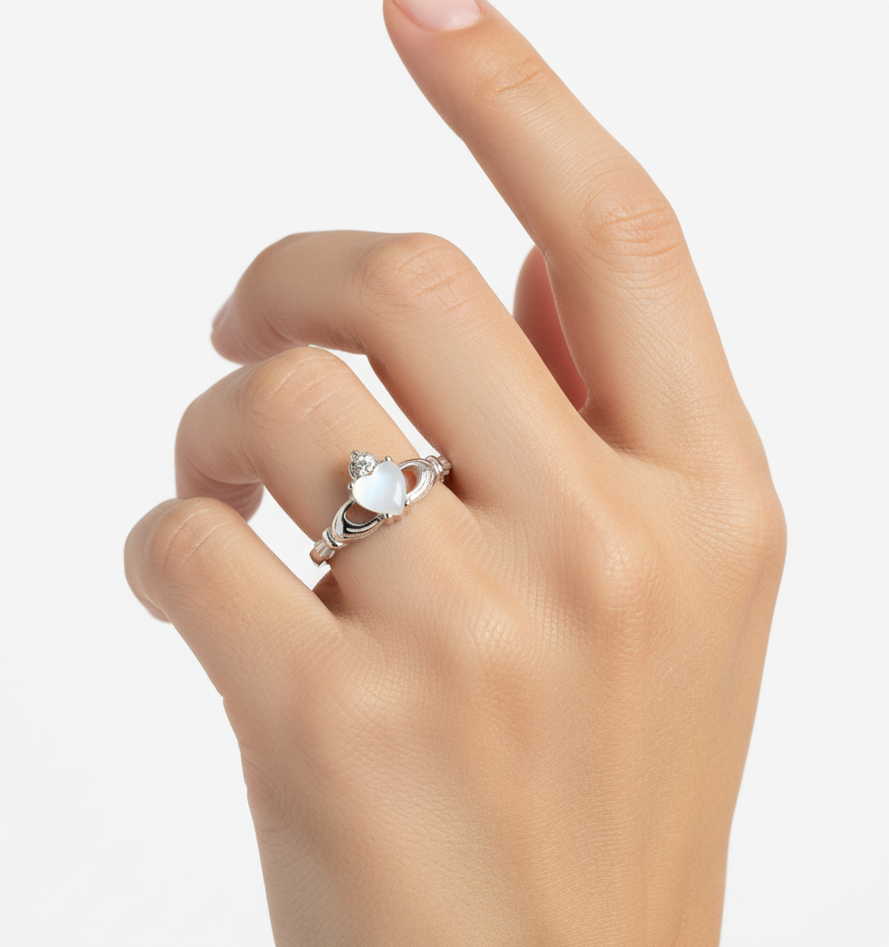 Claddagh Mother of Pearl Celtic Ring – A Symbol of Love, Loyalty, and Friendship