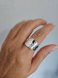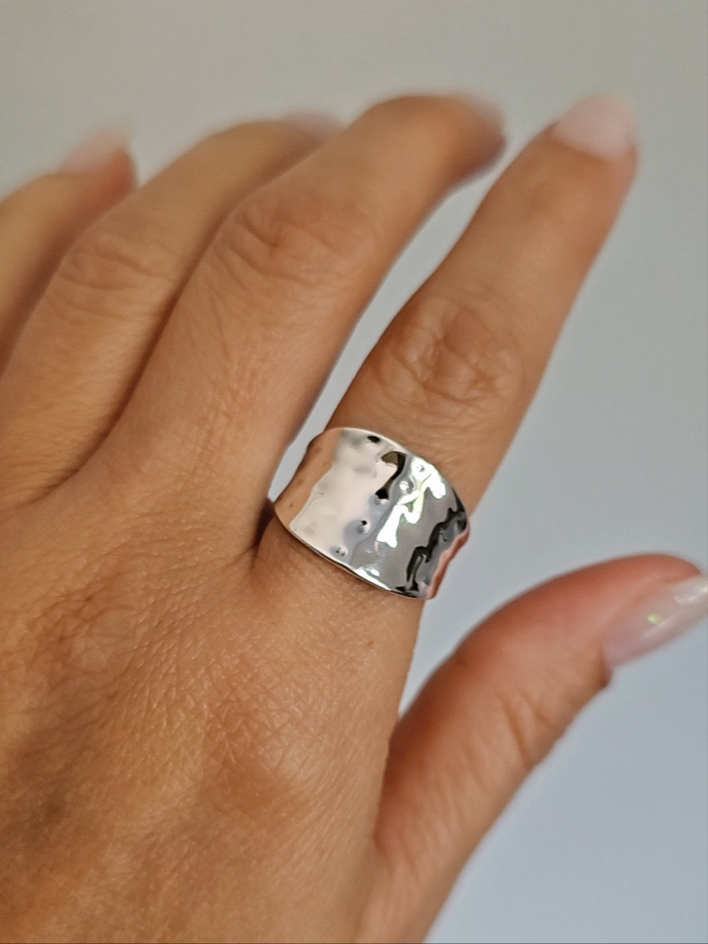 With its captivating design and high-quality craftsmanship, this concave hammered ring offers both style and versatility. Perfect for adding a touch of elegance to any outfit, it will quickly become a favorite accessory for any occasion. Whether as a statement piece or part of a stacked ensemble, this ring’s timeless beauty makes it a true standout.