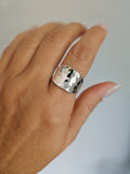 Make a bold statement with this stunning Concave Hammered Ring, crafted from solid 925 sterling silver. The unique concave design and hammered finish create a dynamic texture that plays with light and shadow, giving the ring a sophisticated and eye-catching appeal. Whether worn alone for a minimalist look or stacked with other rings for added flair, this timeless piece is a must-have in your jewelry collection.