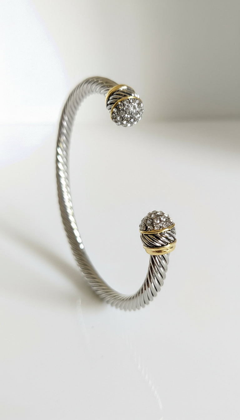 ⚜️Stunning and elegant bangle featuring a dome filled with simulated diamonds. Its gently textured finish and substantial feel are perfect for everyday wear or stacking with other bracelets in an on-trend look.
