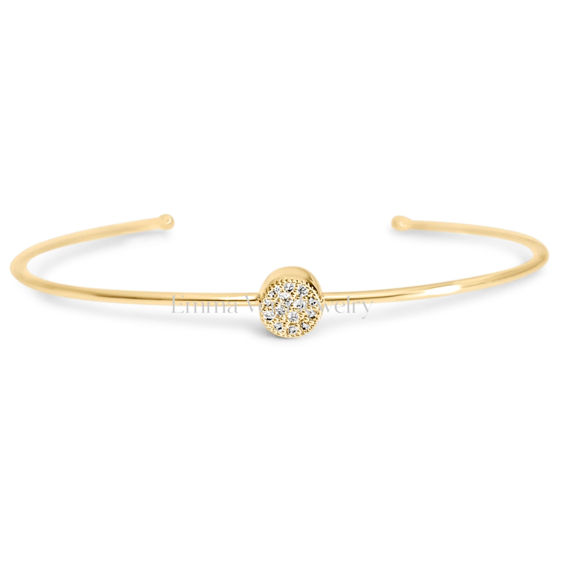 Dainty Gold Open Thin Bangle – 14K Gold Plated with Simulated Diamonds