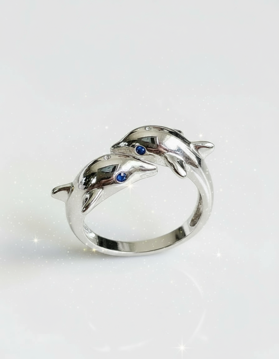 This Dolphin Ring beautifully captures the essence of the ocean with its dolphin-inspired design, accented with blue sapphire stones. Crafted from high-quality 925 sterling silver, this piece radiates a sleek, polished shine that reflects the elegance of the sea. Perfect for ocean lovers or those seeking a unique statement piece, this ring is sure to bring a touch of nature's beauty to your jewelry collection.