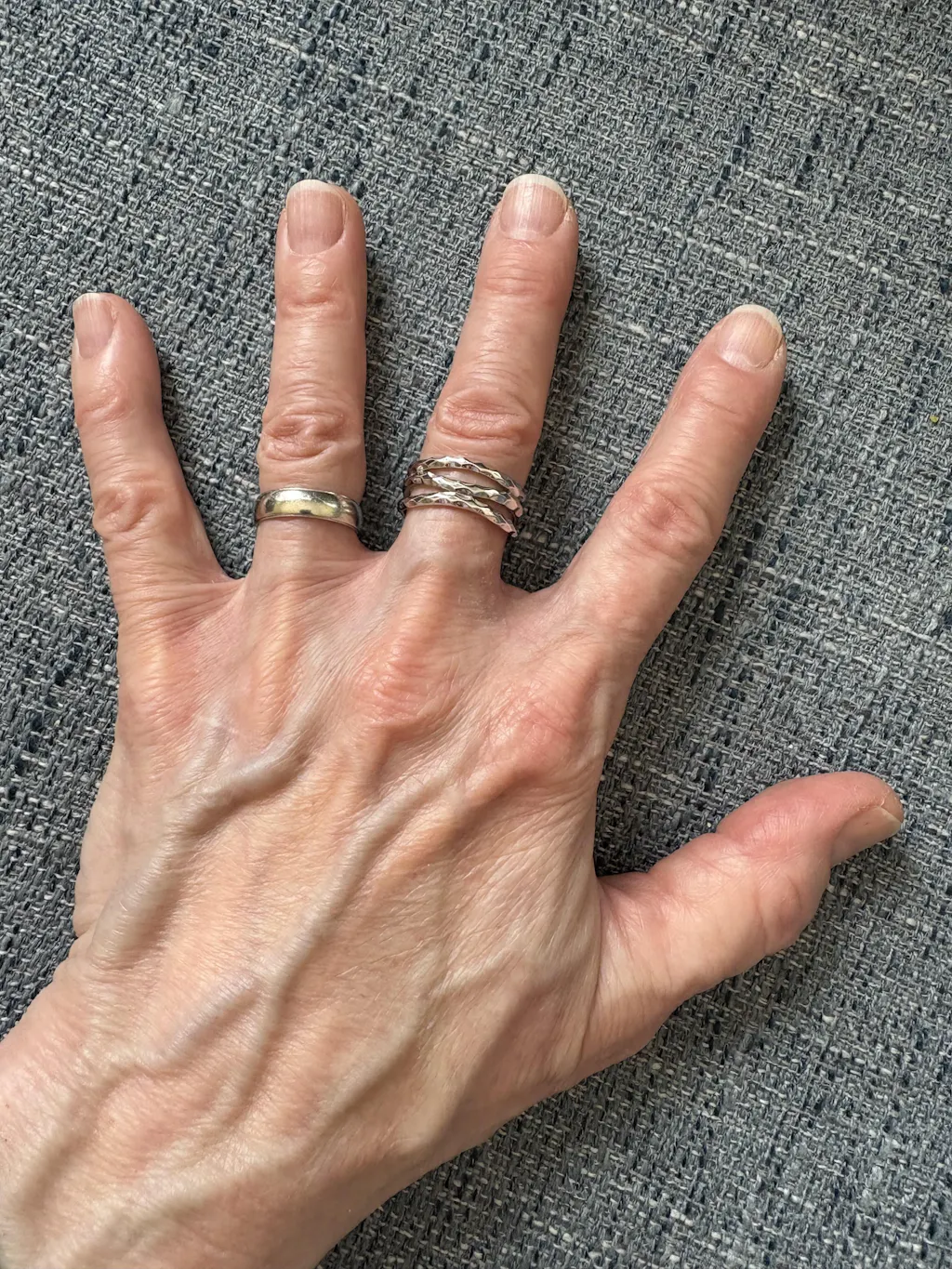 Thank you so much for taking the time to share your feedback! We’re thrilled to hear that you’ve been enjoying your silver ring as a daily wear piece alongside your wedding rings, and we’re glad it’s holding up well, even in the shower.