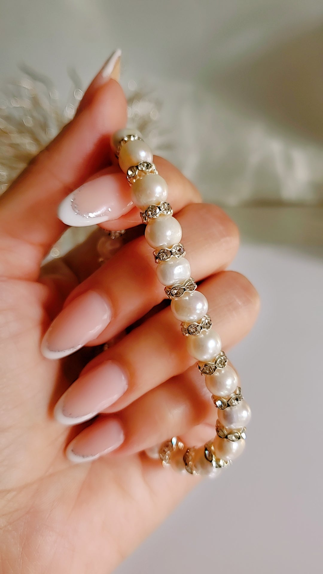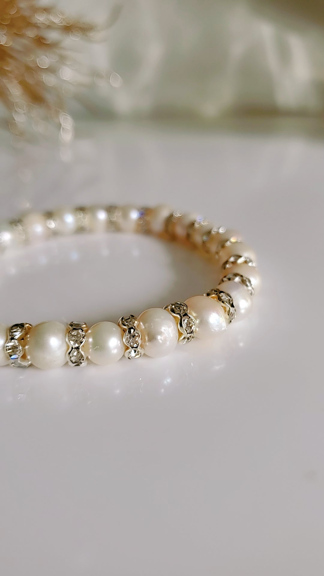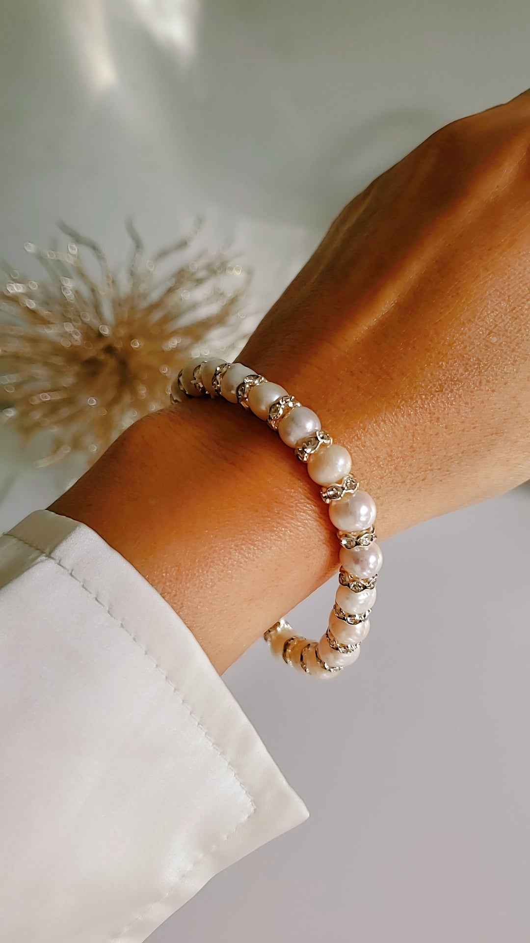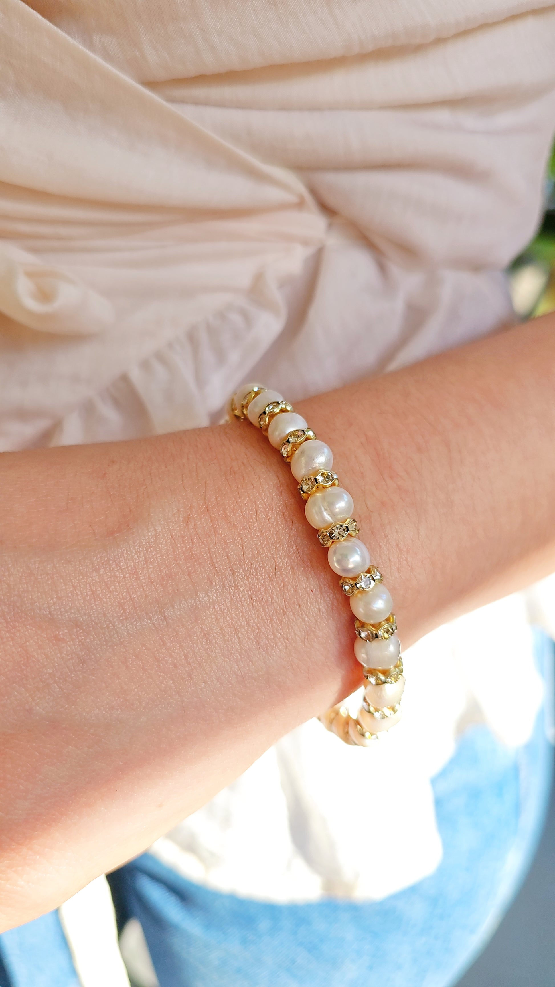 • Material: Fresh water pearls, Cz, beads, elastic