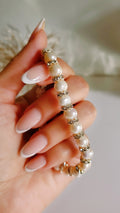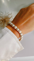 Enhance your elegance with this exquisitely crafted adjustable expandable bracelet, featuring genuine freshwater pearls nestled between delicate CZ  beads. This bracelet strikes the perfect balance between timeless sophistication and modern versatility perfect for stacking with other jewelry