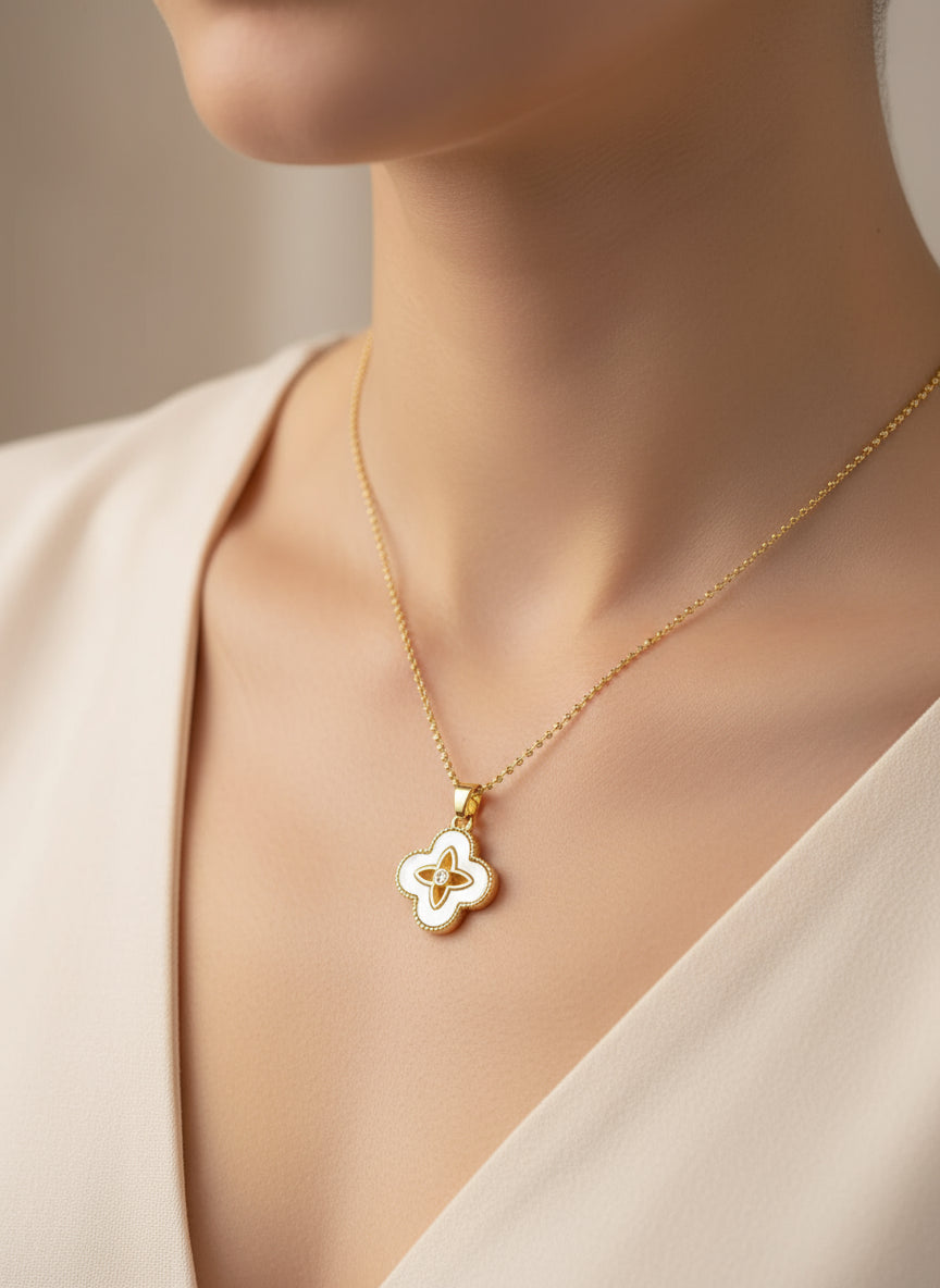 Exude timeless elegance with this exquisite Mother of Pearl pendant, delicately paired with a radiant 18K gold-plated adjustable chain. The perfect blend of sophistication and charm, this necklace is designed to elevate your style effortlessly.
