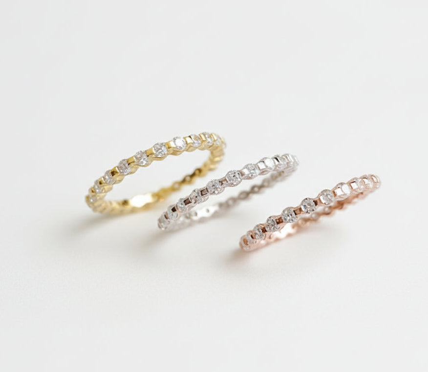 This elegant eternity ring is a timeless symbol of everlasting love, crafted with precision and care. The continuous line of sparkling, clear diamond simulated stones represents moments shared, promises made, and hopes for the future. Available in three stunning finishes – classic 14K Gold Plated, romantic Rose Gold, and sophisticated Sterling Silver – this piece is perfect for any occasion. Whether worn as an anniversary gift, a token of affection, or a personal keepsake, this ring will be cherished for years to come.