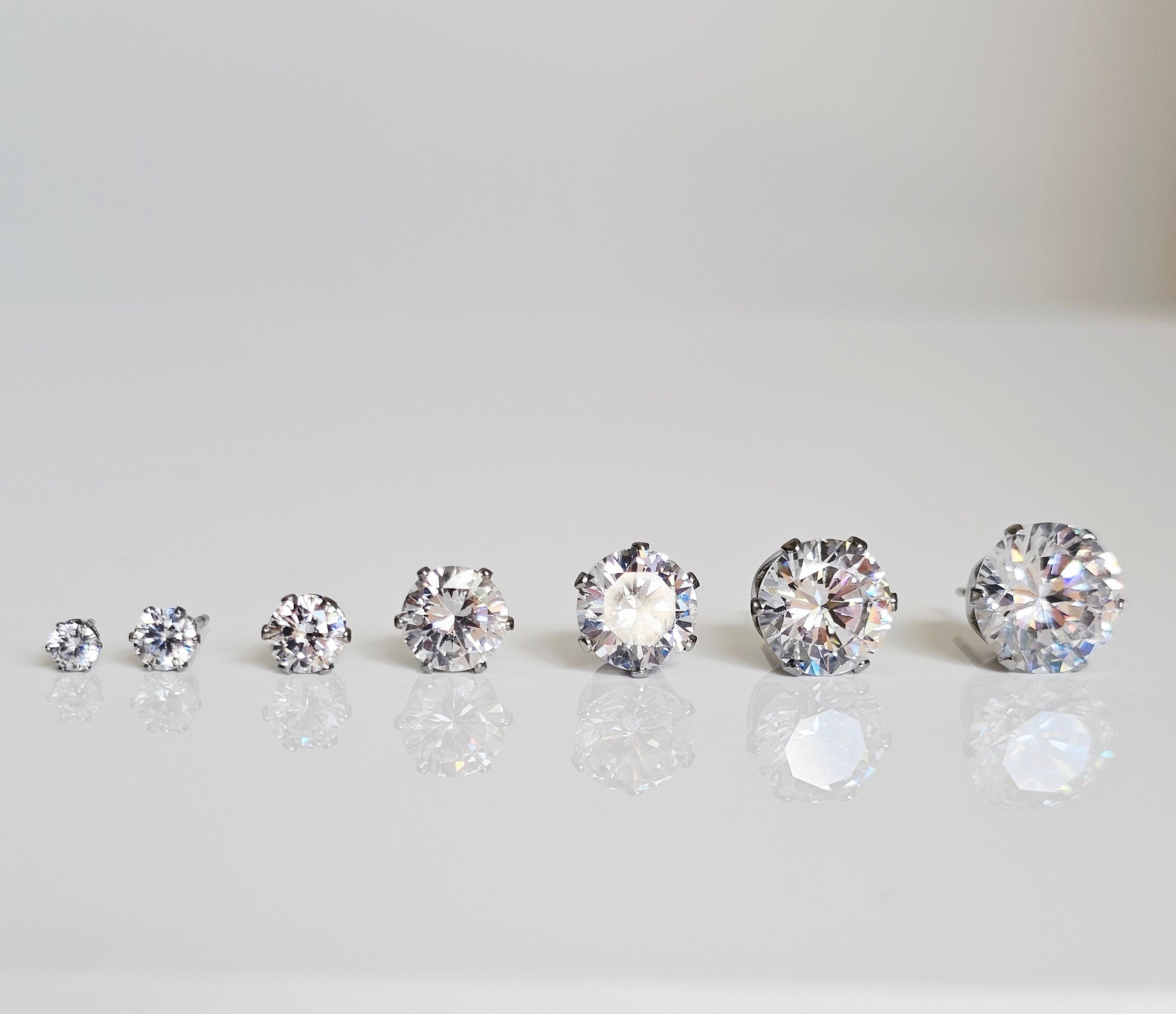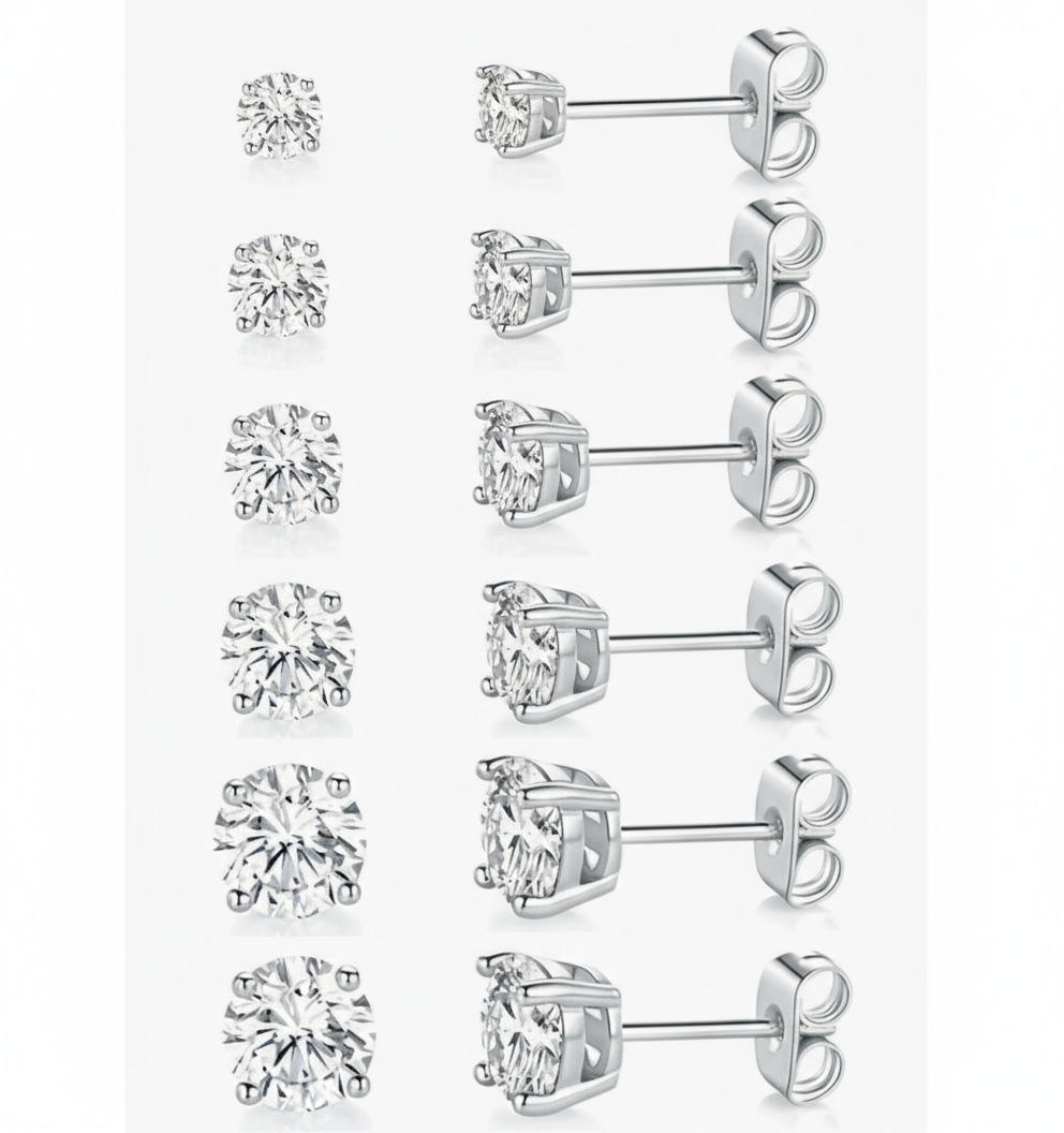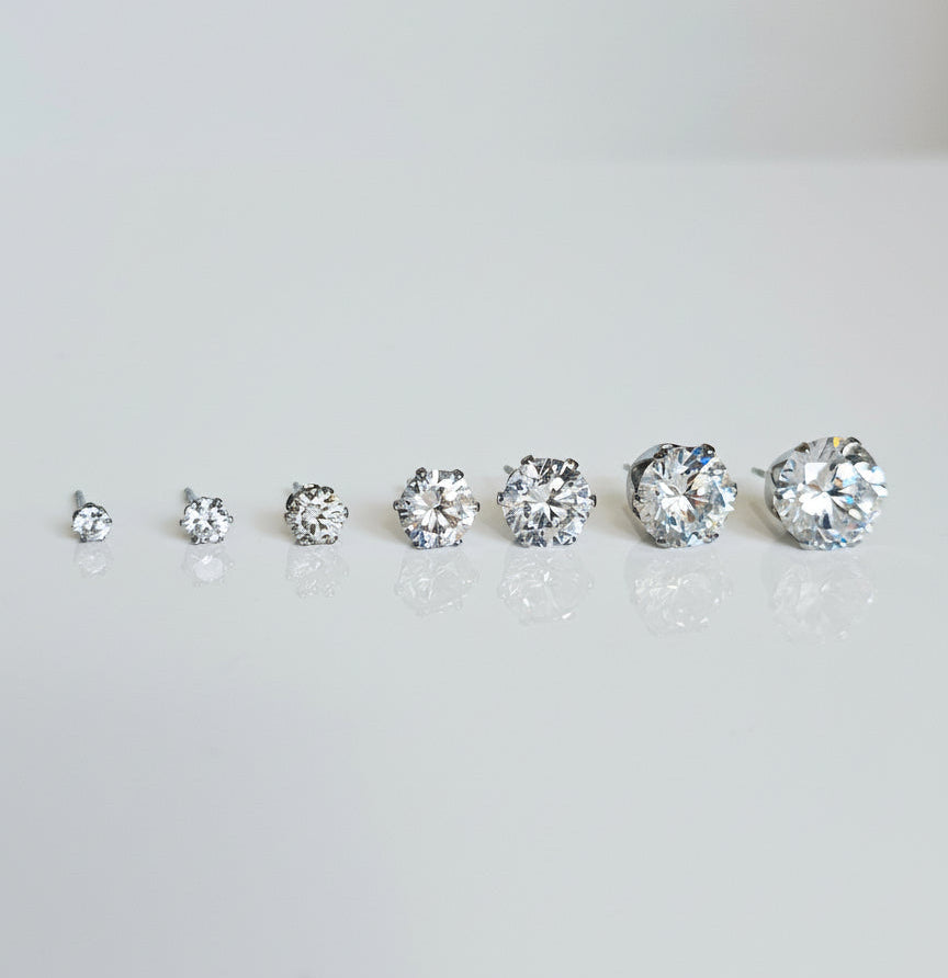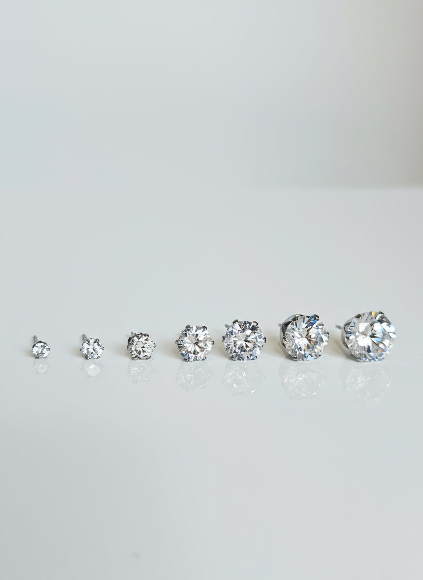 Elegant Stainless Steel CZ Stud Earrings - Simple Round Ball Design, Sizes 3mm to 10mm, Minimalist Everyday Jewelry