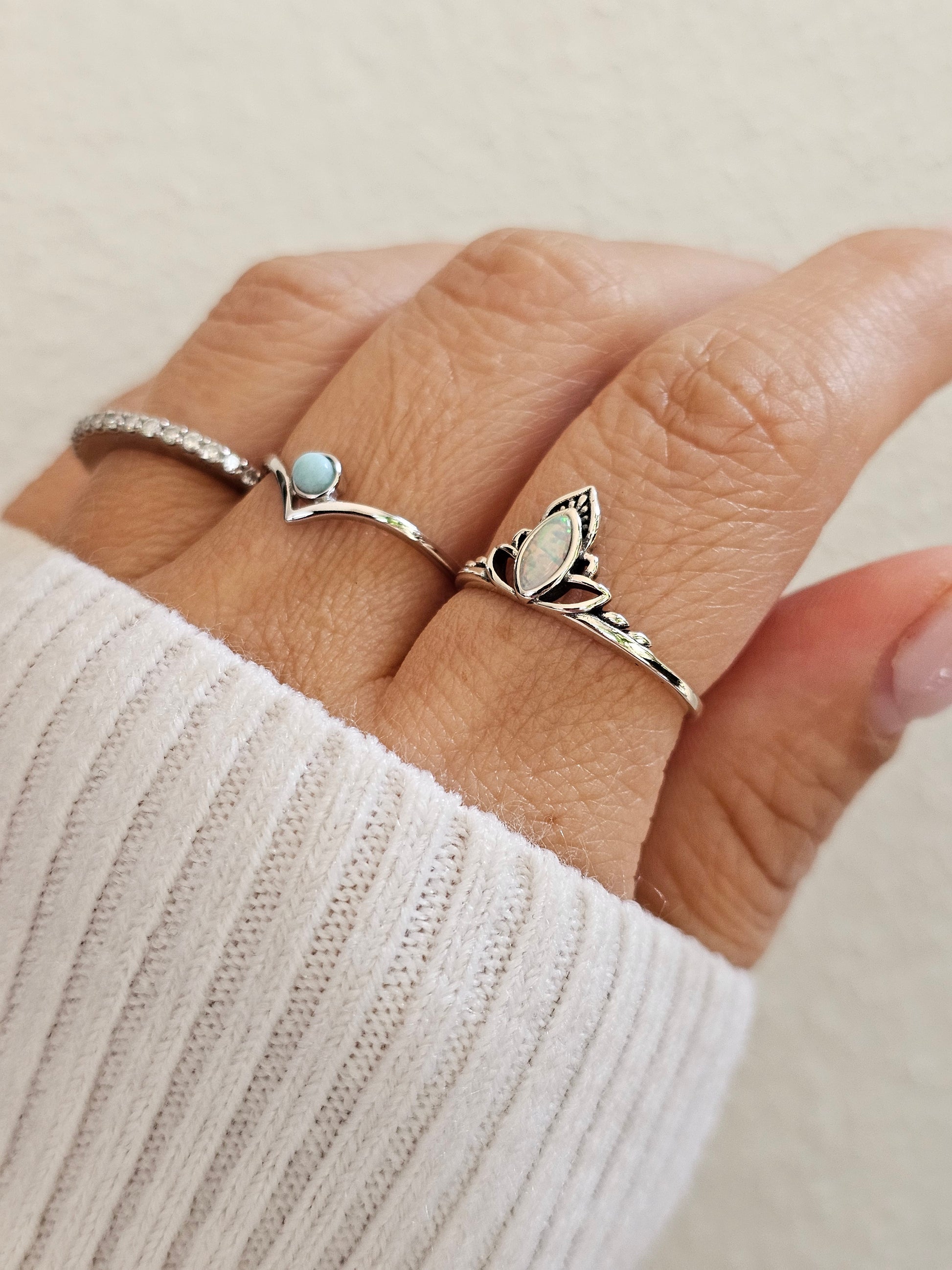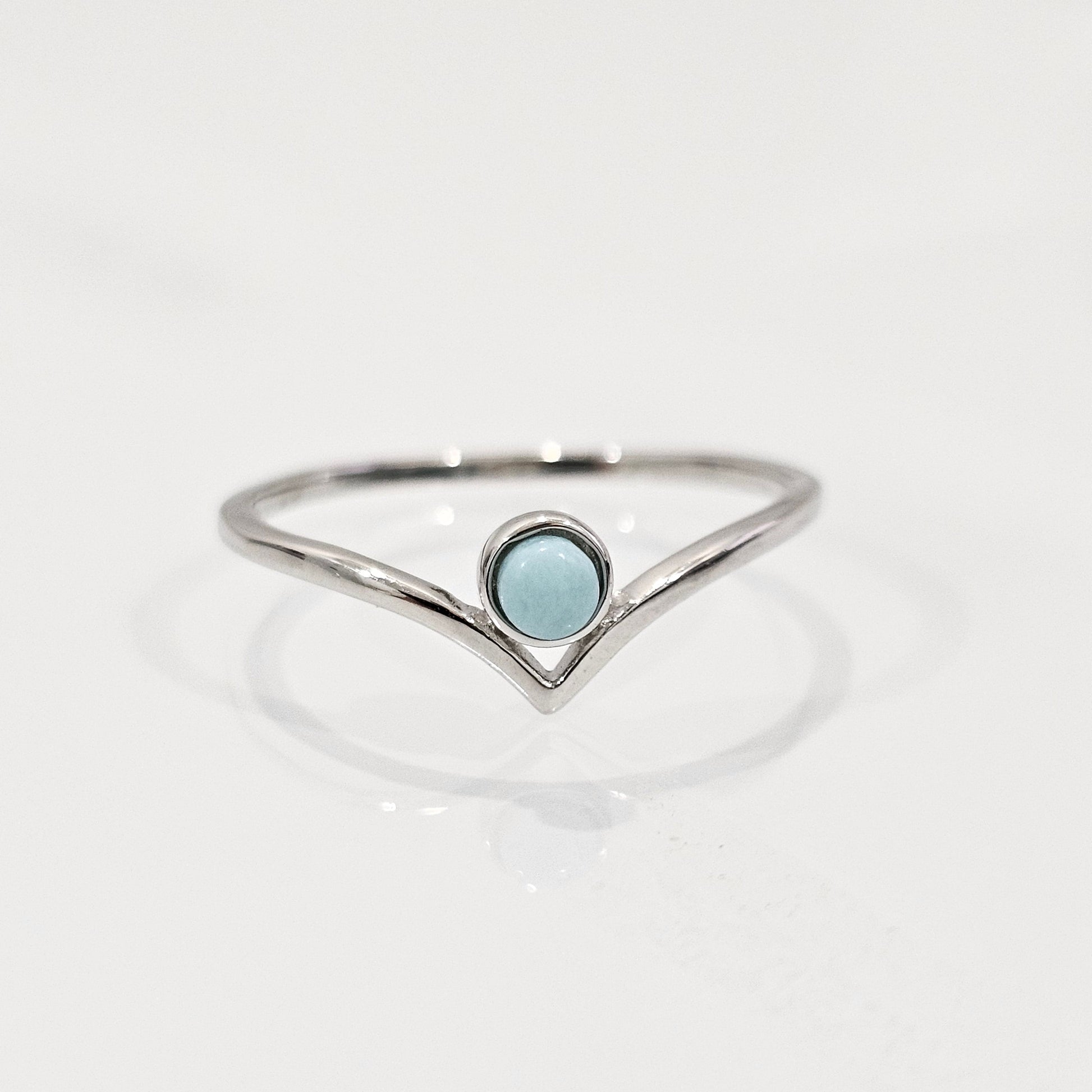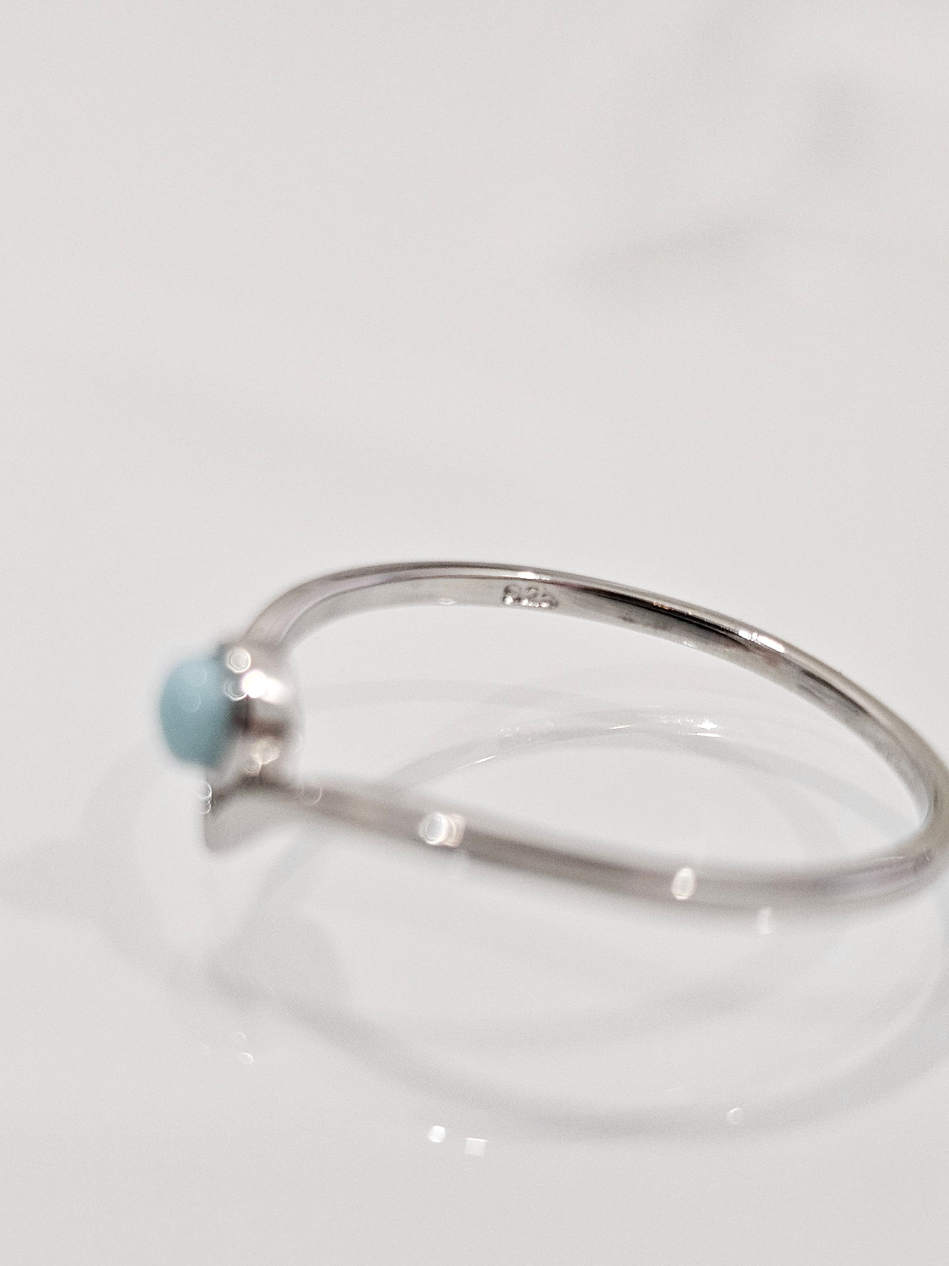 Embrace the tranquil beauty of the Larimar Chevron Ring, a delicate piece that combines the calming energy of Larimar with the timeless appeal of minimalist design. Set in a 925 sterling silver band, this dainty ring features a tear drop-shaped natural Larimar stone, known for its unique blue hue. Its subtle yet striking mandala-inspired design makes it a perfect addition to any jewelry collection, ideal for stacking or wearing alone for a simple statement.