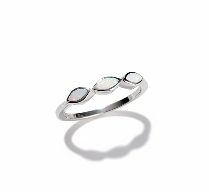 Sterling Silver Marquise White Opal Ring