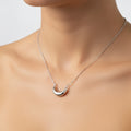 With its ethereal crescent moon design, this Sterling Silver Moon Necklace is a perfect addition to your jewelry collection. Whether you're adding a celestial touch to your everyday look or seeking a meaningful gift, this necklace provides a sophisticated and timeless accent. The high-polish finish and tarnish-resistant rhodium plating ensure long-lasting wear and beauty.