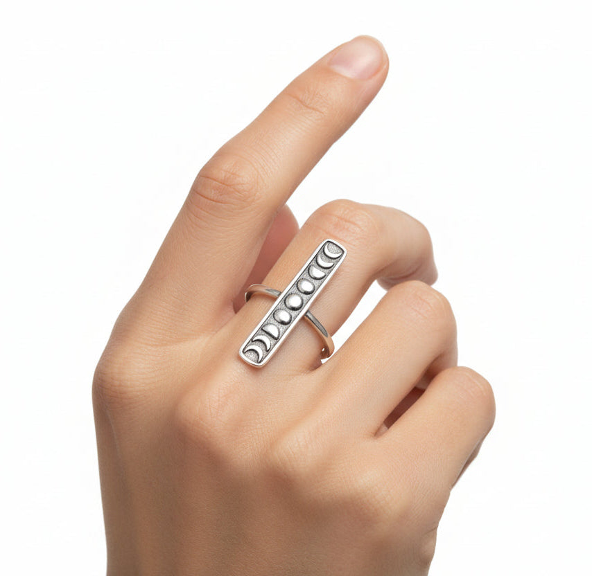 Moon Phases Sterling Silver Ring – Minimalist Bohemian Jewelry