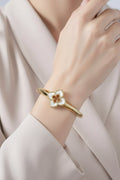 Mother of Pearl Clover Gold Bangle – Stainless Steel, Gold Plated, Elegant Statement Piece