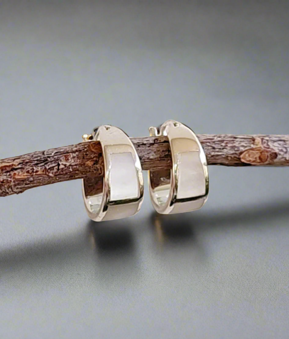 Enjoy the elegance of these Mother of Pearl small hoop earrings and add a radiant touch to your jewelry collection.