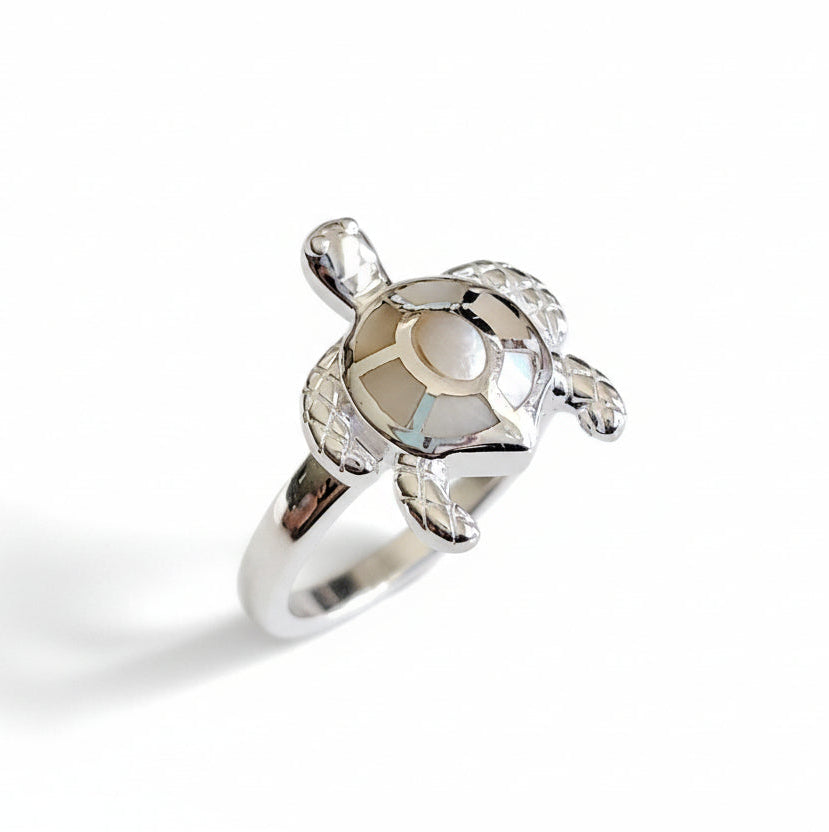 Mother of Pearl Turtle Ring – Unique Sterling Silver Inlay Design, 925 Stamped