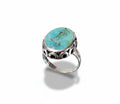 This striking turquoise ring is a true statement piece, designed to reflect the natural beauty and energy of the vibrant turquoise stone. Handcrafted in Thailand, this bold ring combines bohemian style with timeless elegance. The oval-shaped, natural turquoise is set in a beautifully detailed sterling silver band, offering a unique and personal accessory that embodies creativity, tranquility, and emotional balance.