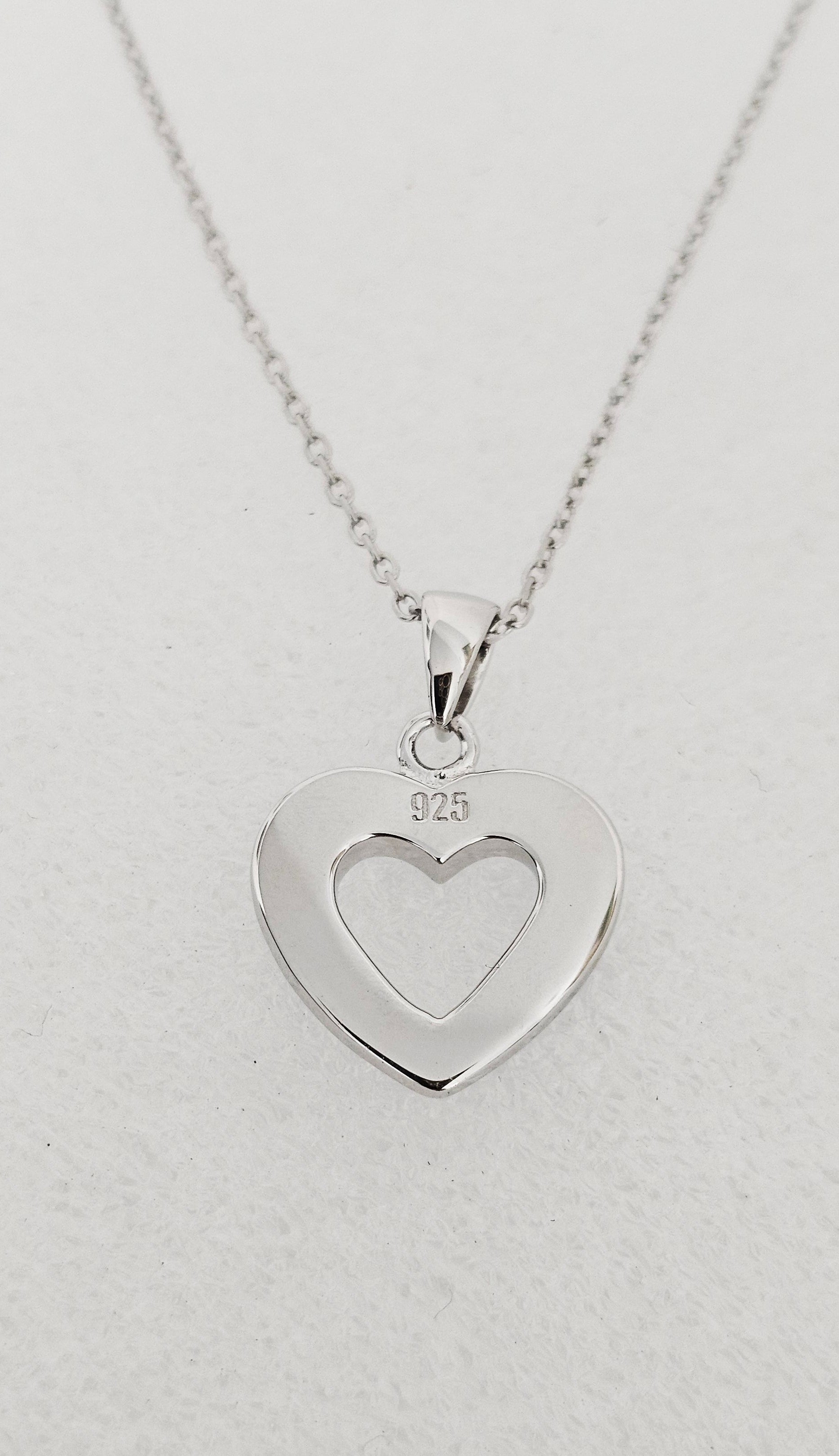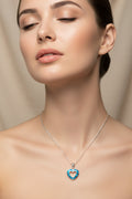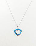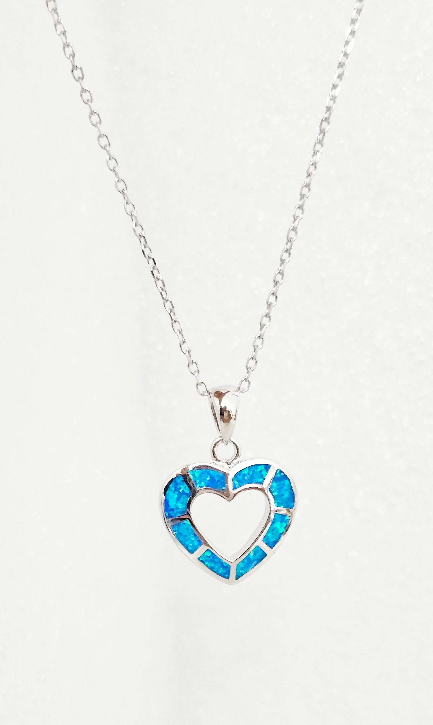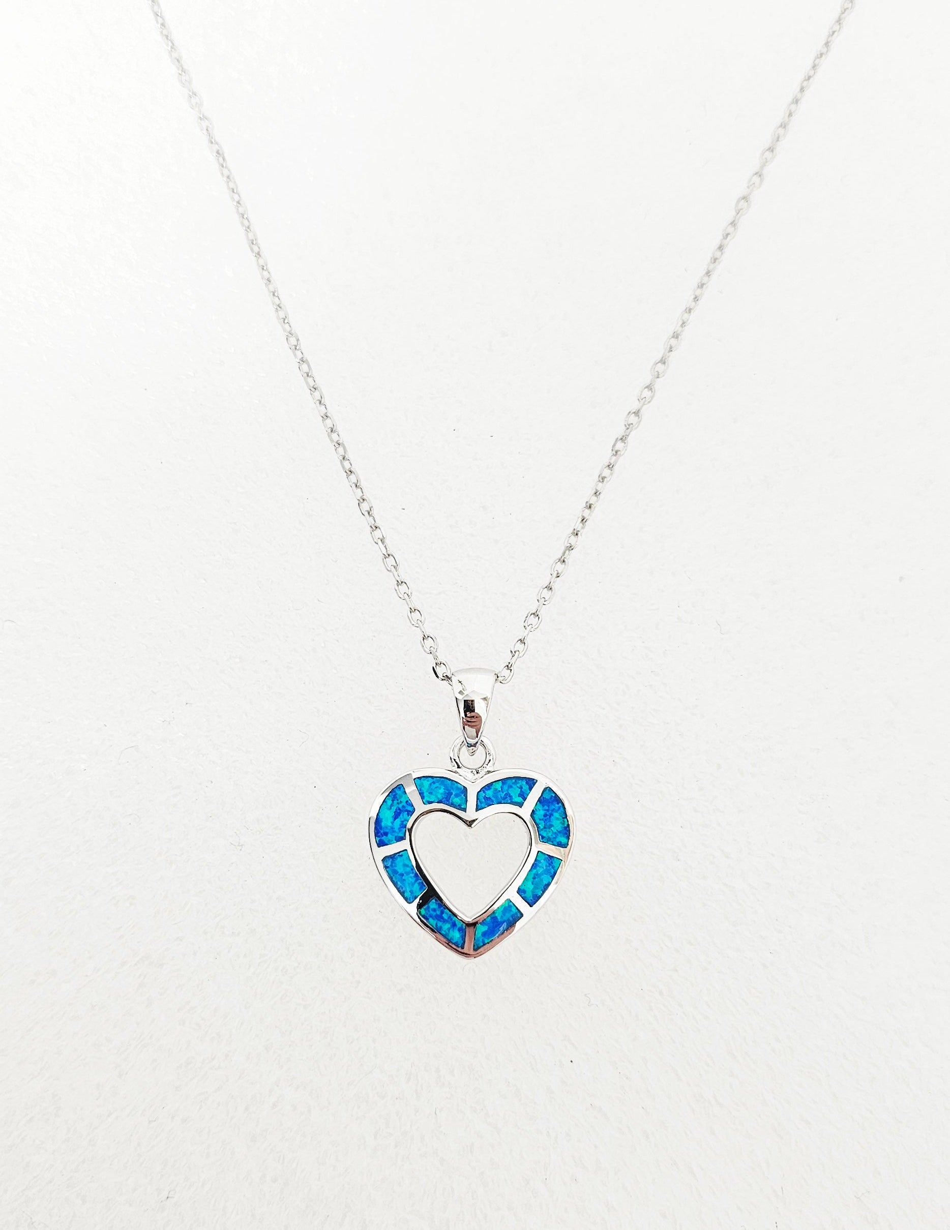 A stunning sterling silver heart pendant featuring blue opal, complete with an included chain.  This exquisite piece of jewelry captures the essence of elegance and grace. The heart-shaped blue opal shimmers with an array of captivating colors, reflecting light with every movement. The sterling silver setting enhances the opal's vibrant hues, creating a harmonious blend of sophistication and charm. Perfect for any occasion, this pendant makes an ideal gift for a loved one or a beautiful addition to your own collection. The included chain ensures that it can be worn immediately, adding a touch of timeless beauty to any outfit.
