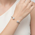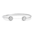 This elegant Open Delicate Silver Bracelet is a timeless piece that effortlessly enhances any outfit. Designed with simulated diamonds and a subtle, double round design, it catches attention with every movement. Whether worn as a statement bracelet or given as a thoughtful bridesmaids gift, this piece adds a touch of sophistication and sparkle to any occasion.