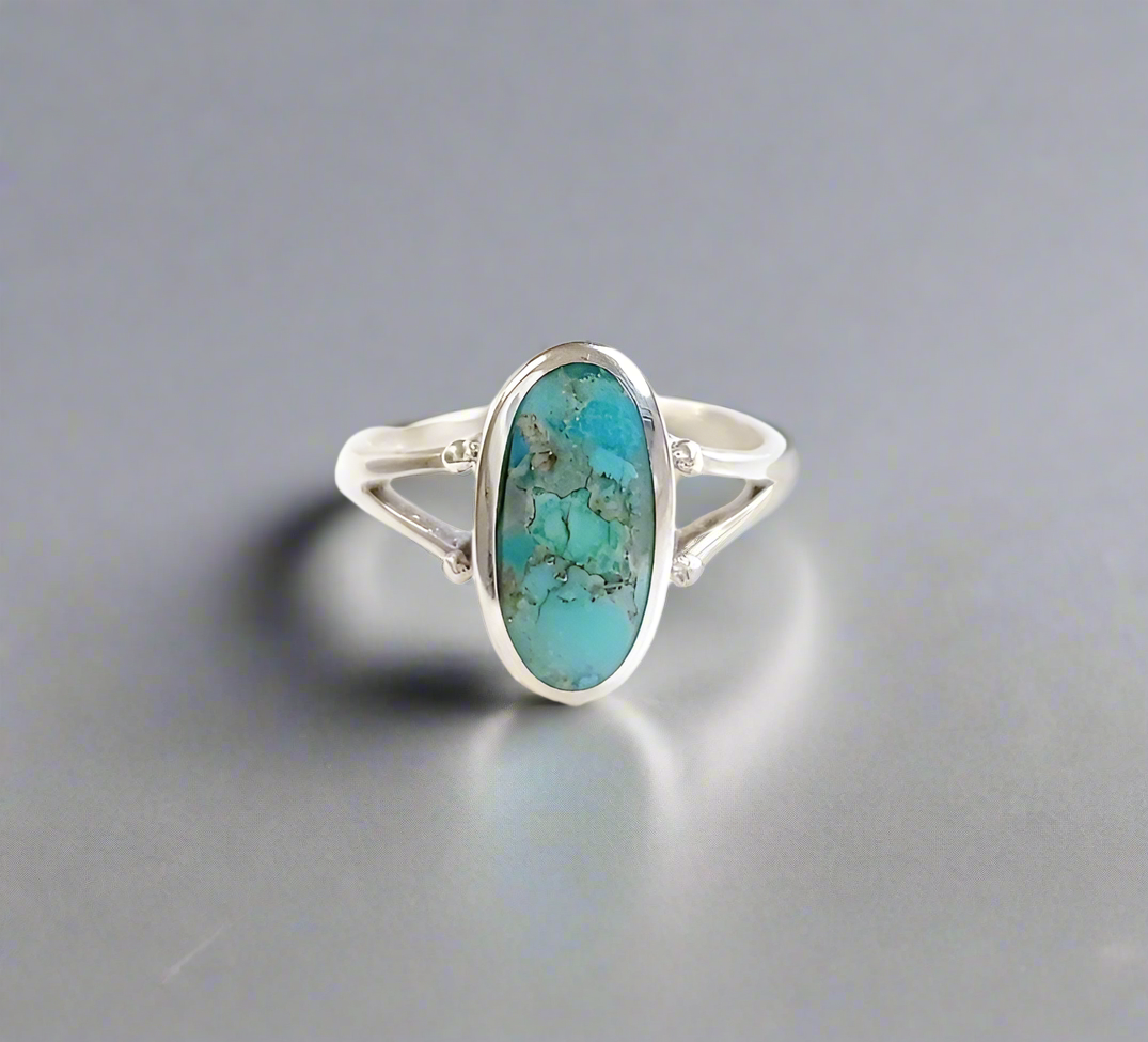 Sterling Silver Turquoise Ring – Genuine Oval Stone Minimalist Design