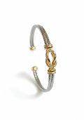 🤍Elevate your look with the Reef Knot Bangle, where elegance meets versatility. This exquisite bracelet features a delicate 18K gold-plated knot that unites the striking two-tone cable design, creating the perfect blend of modern sophistication and vintage-inspired charm. The gracefully textured silver cable circles the wrist with a bold yet refined presence, offering a substantial feel without overwhelming your style. Ideal for daily wear or stacking, this timeless piece delivers effortless chic in every moment