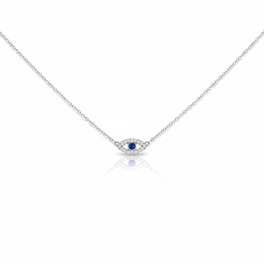 Sterling Silver Evil Eye Necklace – Protection Jewelry with Sapphire and CZ Stones