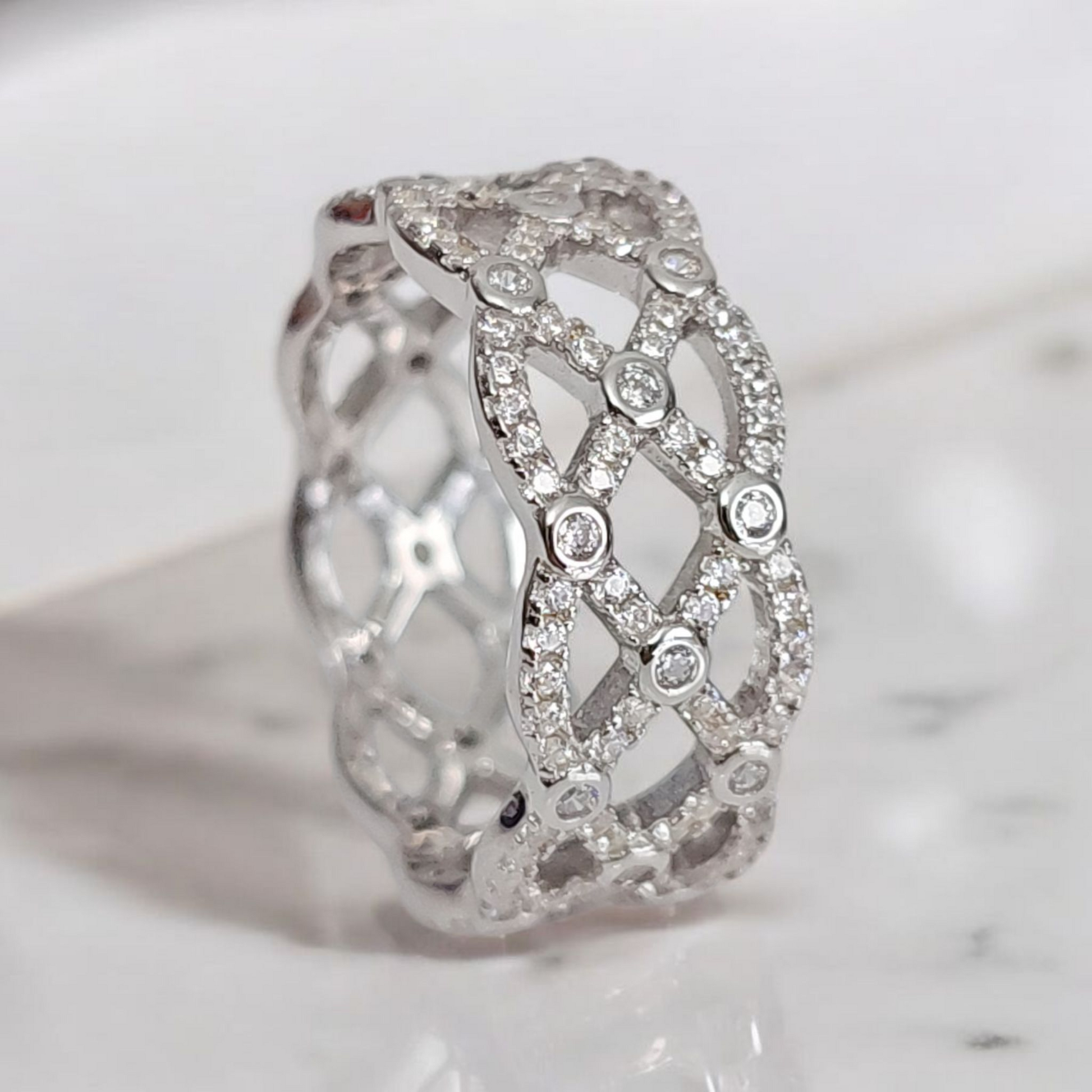 Statement Celtic Band Ring – Sterling Silver Engagement, Bridal, or Anniversary Band with Cubic Zirconia Accents