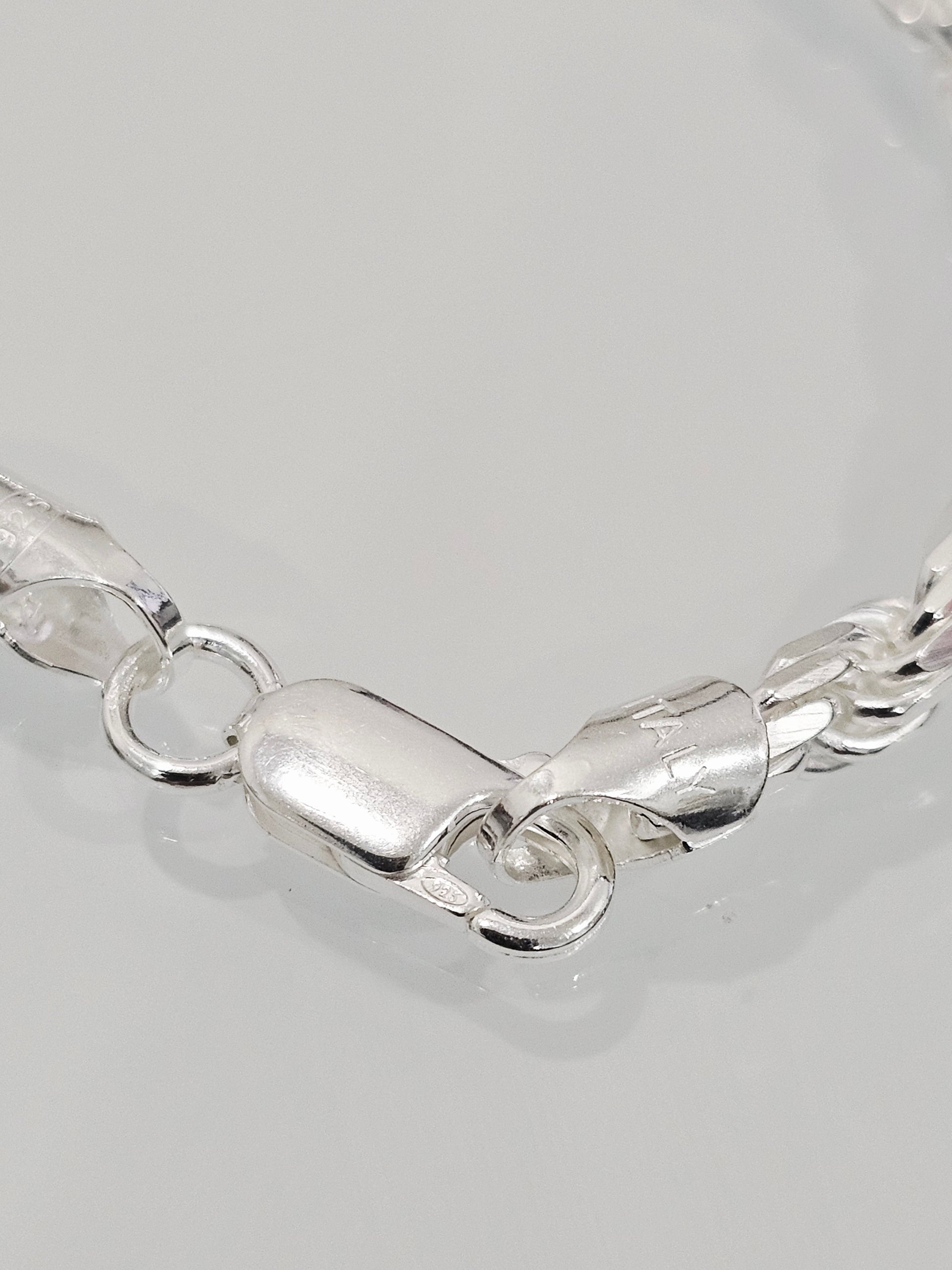 Elevate your jewelry collection with this exquisite 925 sterling silver chain, meticulously crafted in Italy. Featuring a durable gauge of 100 and a comfortable width of 4.7mm, this chain combines strength with elegance. The gleaming high-polish finish enhances its timeless appeal, while the secure pear lobster clasp ensures hassle-free wear.
