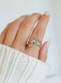 Designed with a striking central sphere for a bold, unique touch, this elegant and trendy ring is truly one-of-a-kind. Expertly crafted with precision, this stunning piece showcases multiple rows of polished spheres, creating captivating dimension and texture. A must-have for the fashion-forward, it’s the perfect blend of modern sophistication and artisanal mastery.