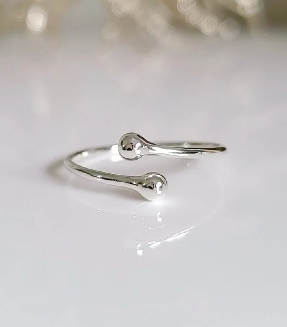 Sterling Silver Dainty Ball Ring – Minimalist Adjustable Wraparound Stackable Ring