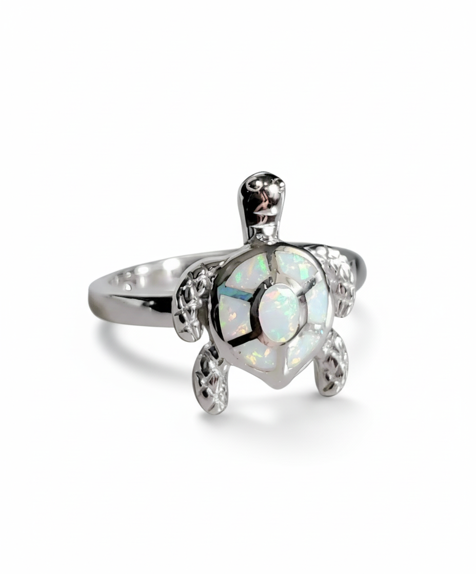 White Opal Turtle Ring – Sterling Silver Ocean-Inspired Jewelry